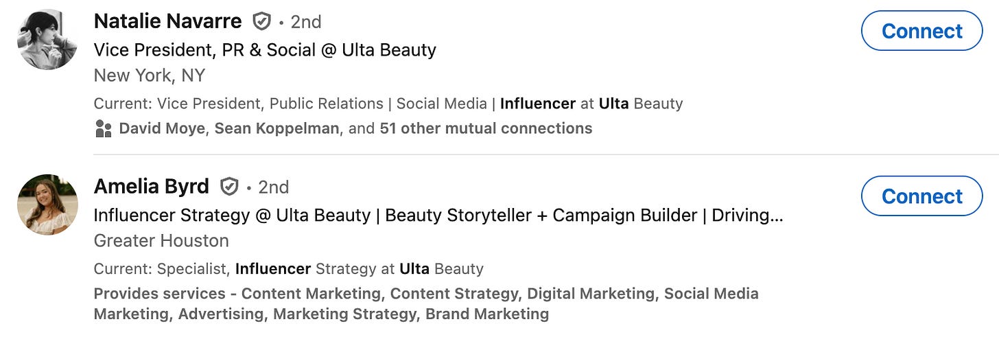 Sure enough, you will find who works in influencer marketing for Ulta Beauty.