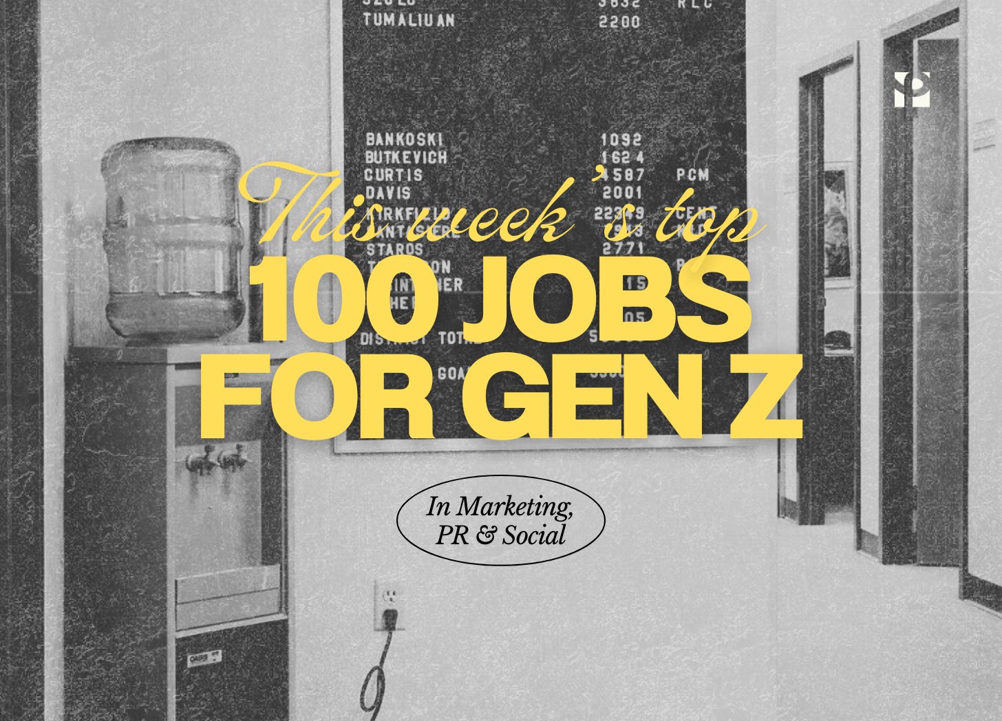 Here are this weekβs top 100 jobs in PR, Marketing and Social for young professionals.